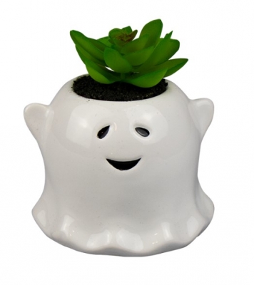 These succulent planters come with fake plants planted in a Halloween ghost. Standing 12cm in height the ghost features a novelty painted on face.